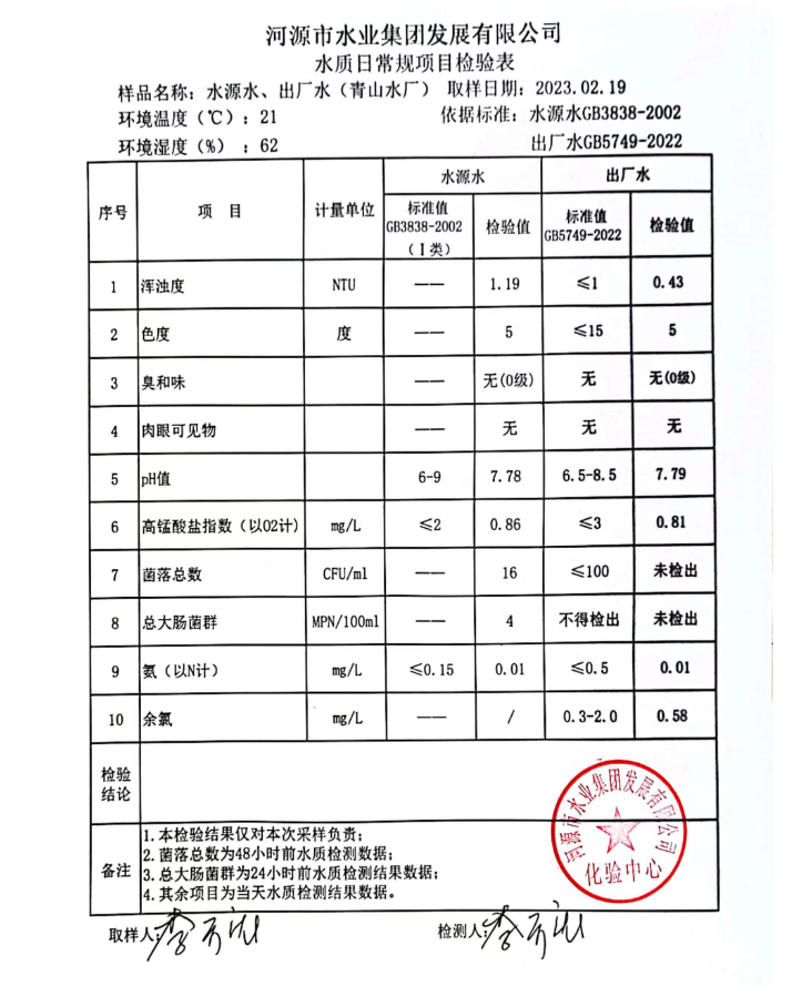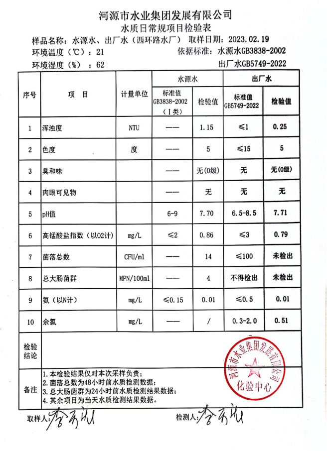 2023年2月19日水質(zhì)檢驗報告