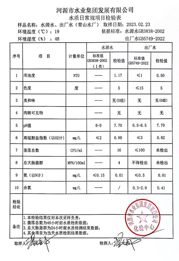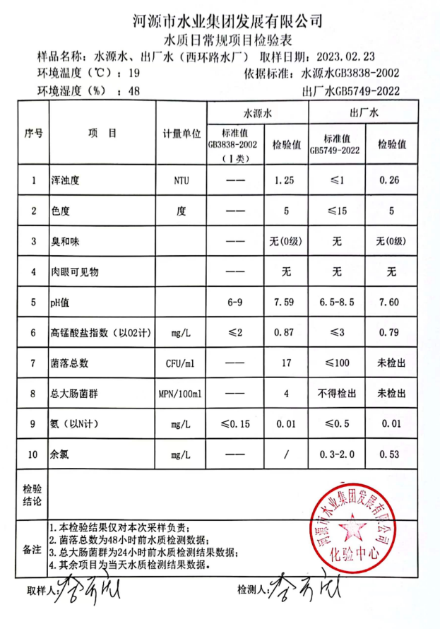 2023年2月23日水質(zhì)檢驗(yàn)報(bào)告