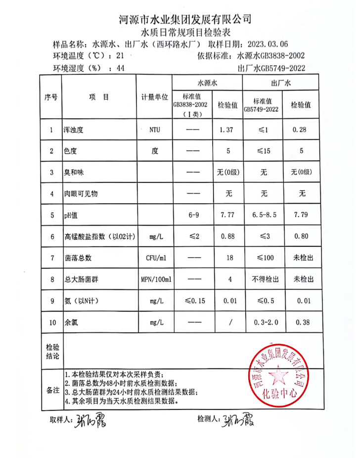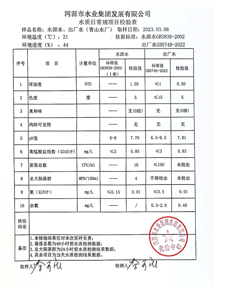 2023年3月6日水質(zhì)檢驗報告