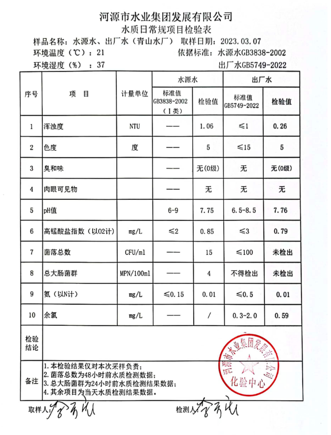 2023年3月7日水質(zhì)檢驗(yàn)報(bào)告