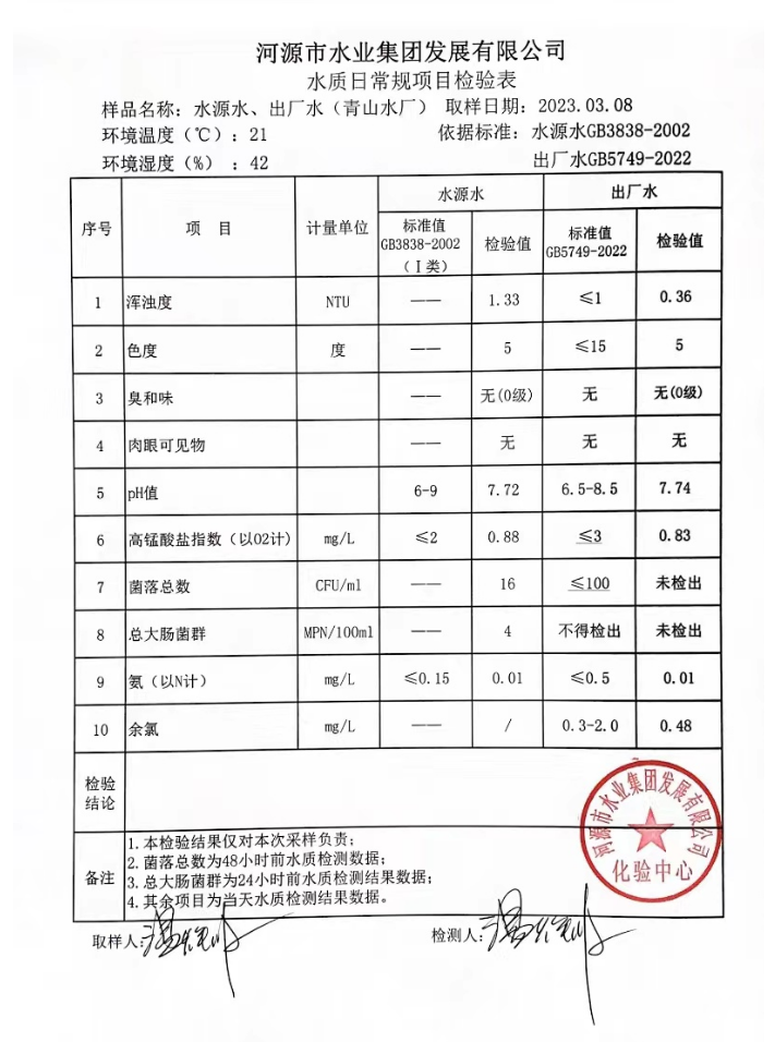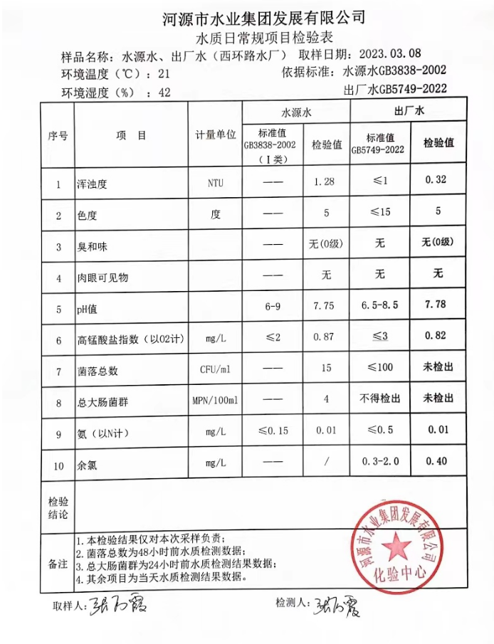 2023年3月8日水質(zhì)檢驗(yàn)報告