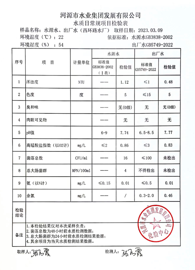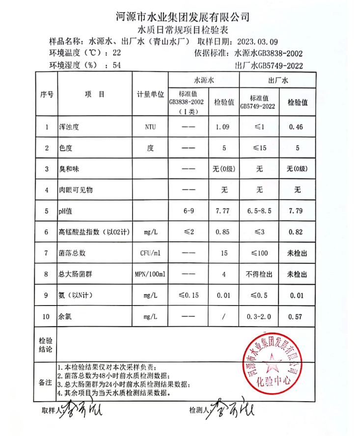 2023年3月9日水質(zhì)檢驗報告
