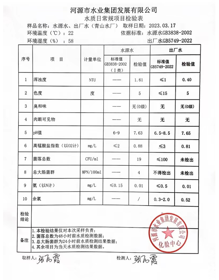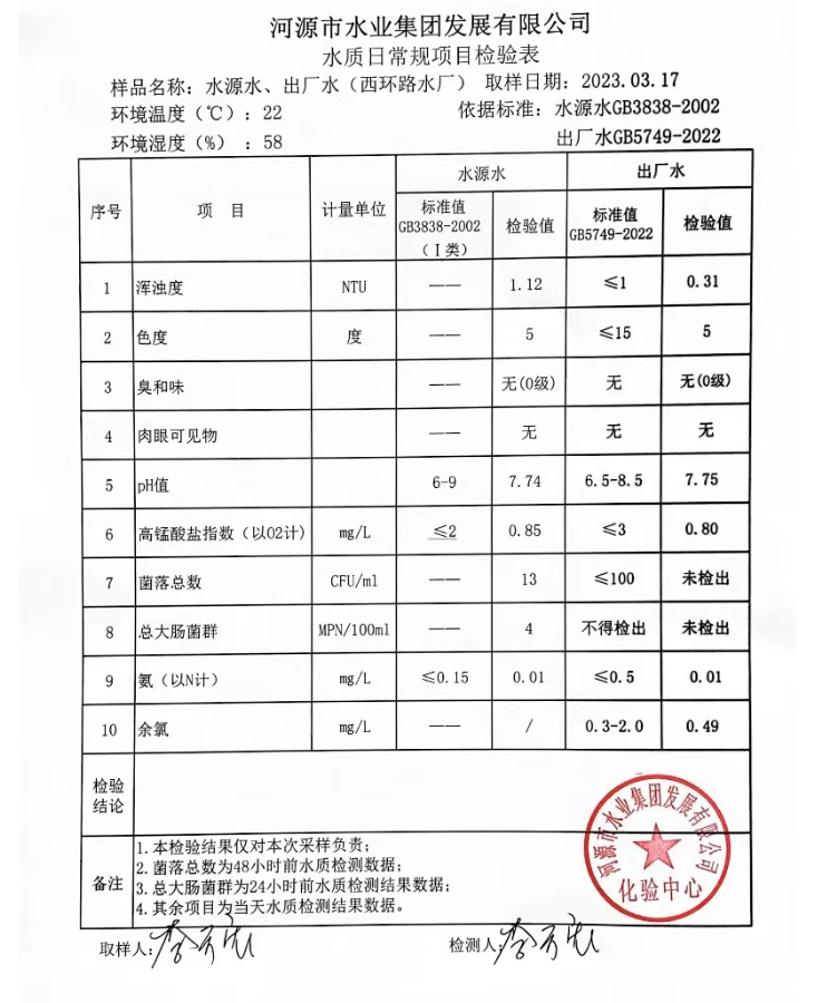 2023年3月17日水質(zhì)檢驗報告
