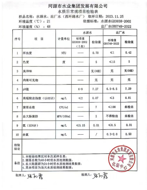 2023年11月25日水質(zhì)檢驗(yàn)報(bào)告 ???