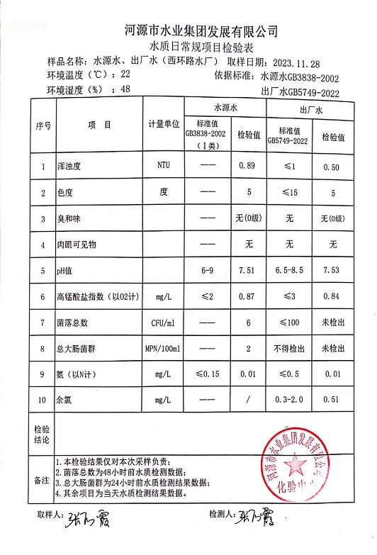 2023年11月28日水質(zhì)檢驗(yàn)報(bào)告 ???