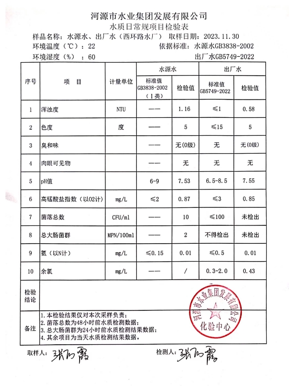 2023年11月30日水質(zhì)檢驗報告 ???