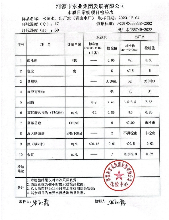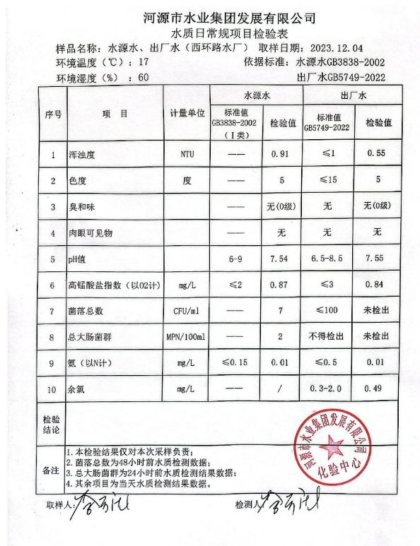 2023年12月4日水質(zhì)檢驗(yàn)報告 ???