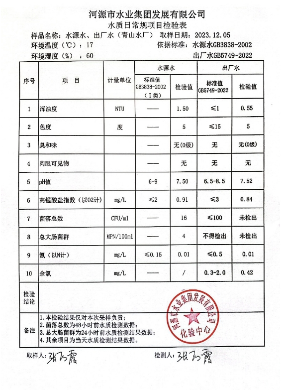 2023年12月5日水質(zhì)檢驗(yàn)報(bào)告 ???