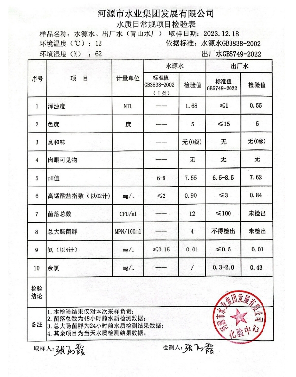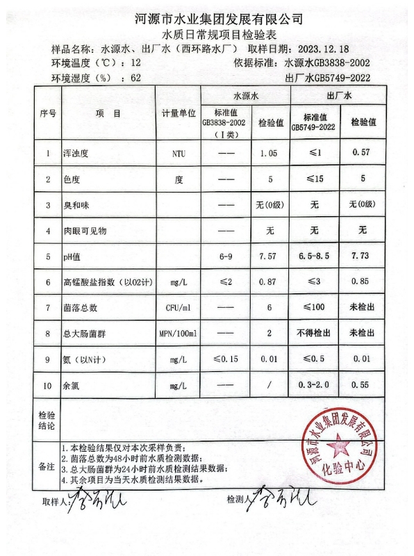 2023年12月18日水質(zhì)檢驗報告 ???