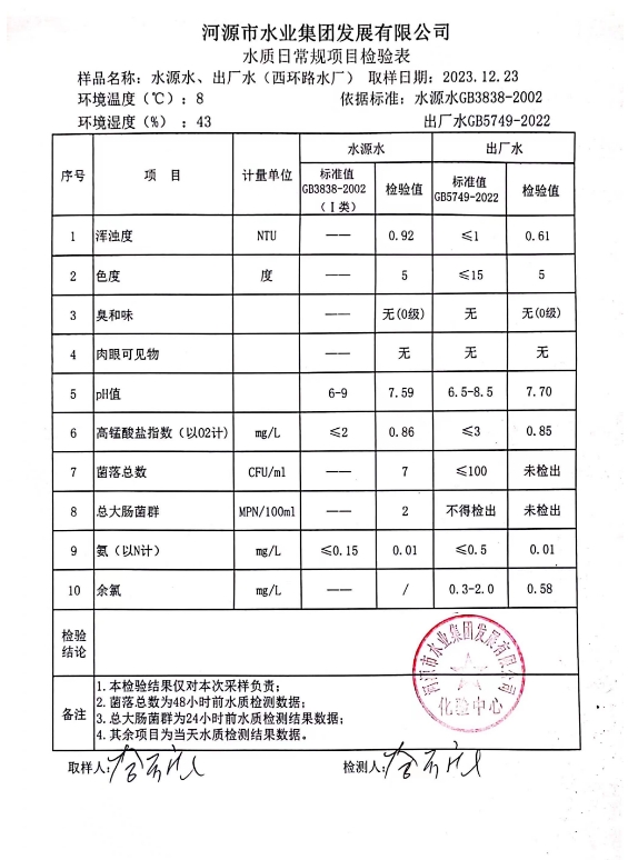 2023年12月23日水質檢驗報告