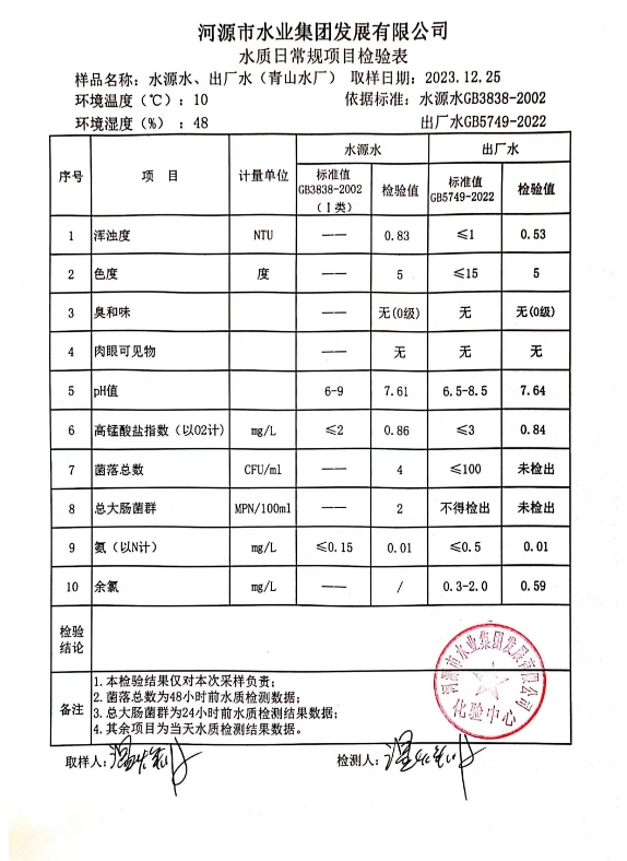 2023年12月25日水質(zhì)檢驗報告