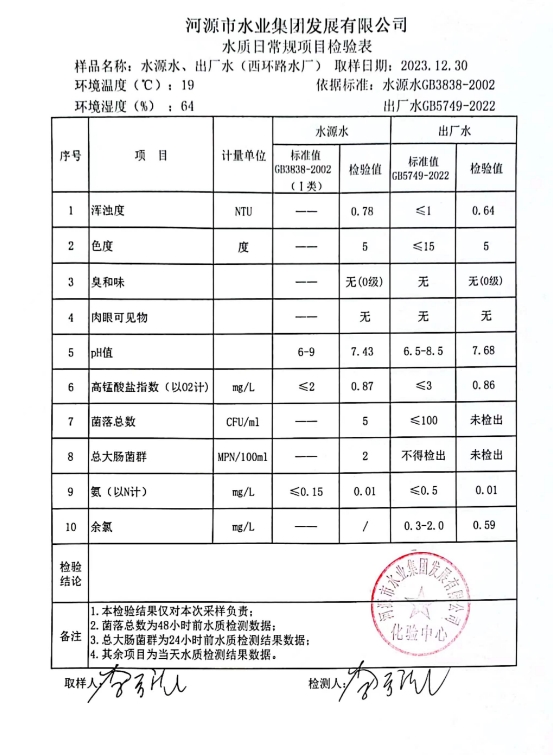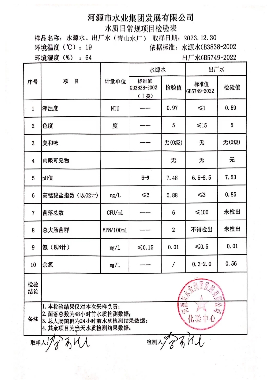 2023年12月30日水質(zhì)檢驗(yàn)報(bào)告 ???