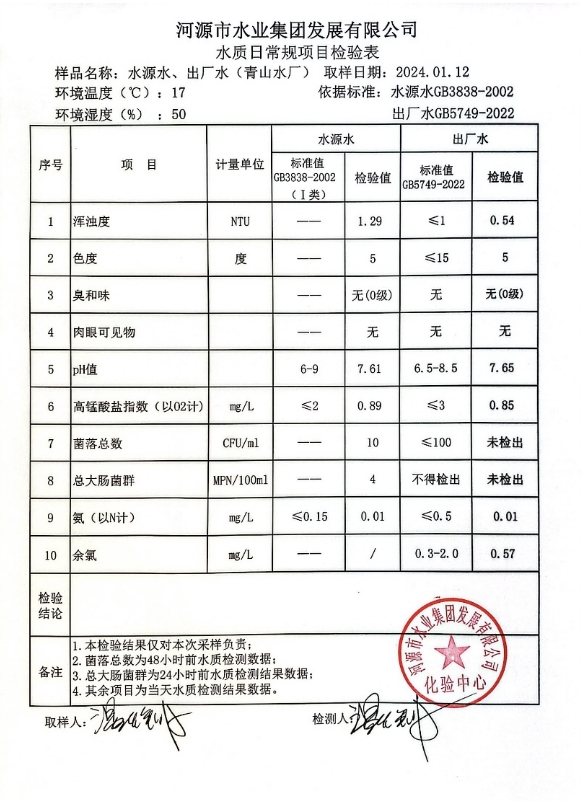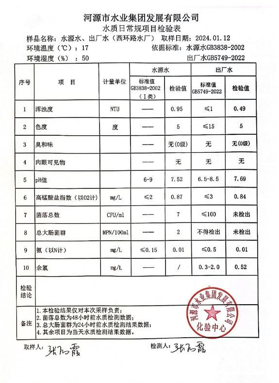 2024年1月12日水質(zhì)檢驗(yàn)報(bào)告 ???