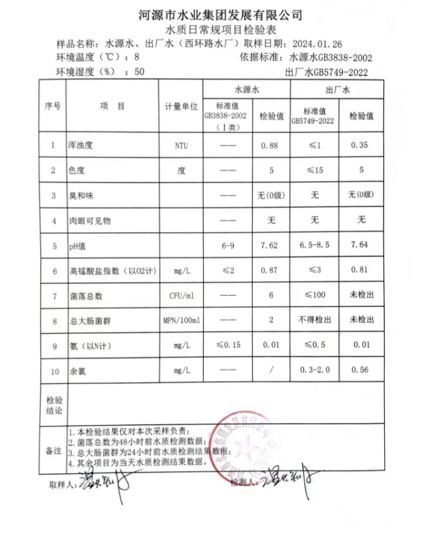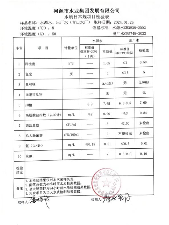 2024年1月26日水質(zhì)檢驗(yàn)報(bào)告 ???