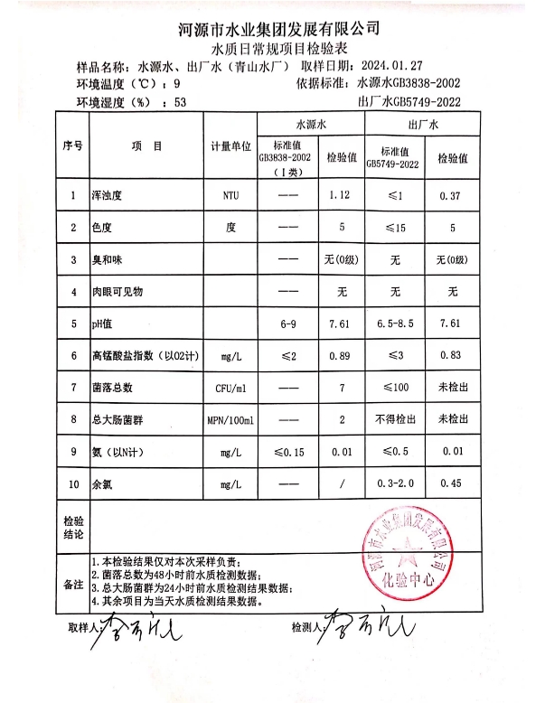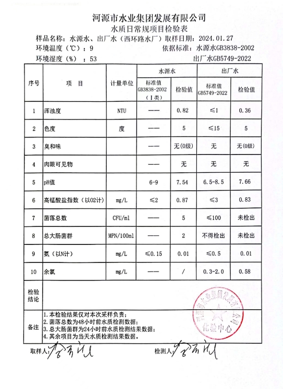 2024年1月27日水質(zhì)檢驗報告 ???