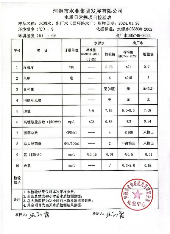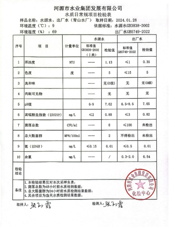 2024年1月28日水質(zhì)檢驗(yàn)報(bào)告 ???