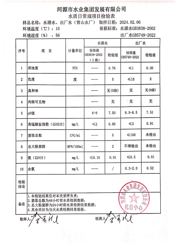 2024年2月6日水質(zhì)檢驗報告 ???
