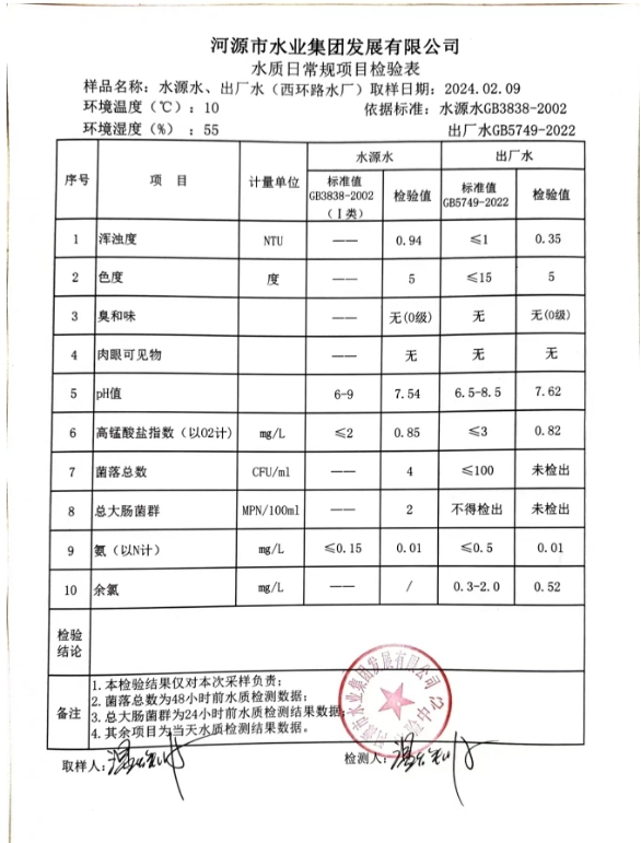 2024年2月9日水質(zhì)檢驗報告 ???