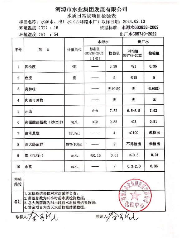 2024年2月13日水質(zhì)檢驗報告 ???