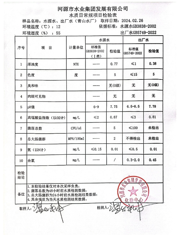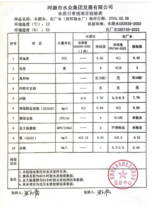 2024年2月26日水質(zhì)檢驗報告 ???
