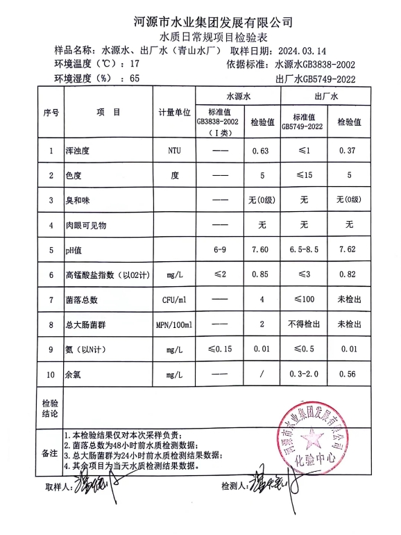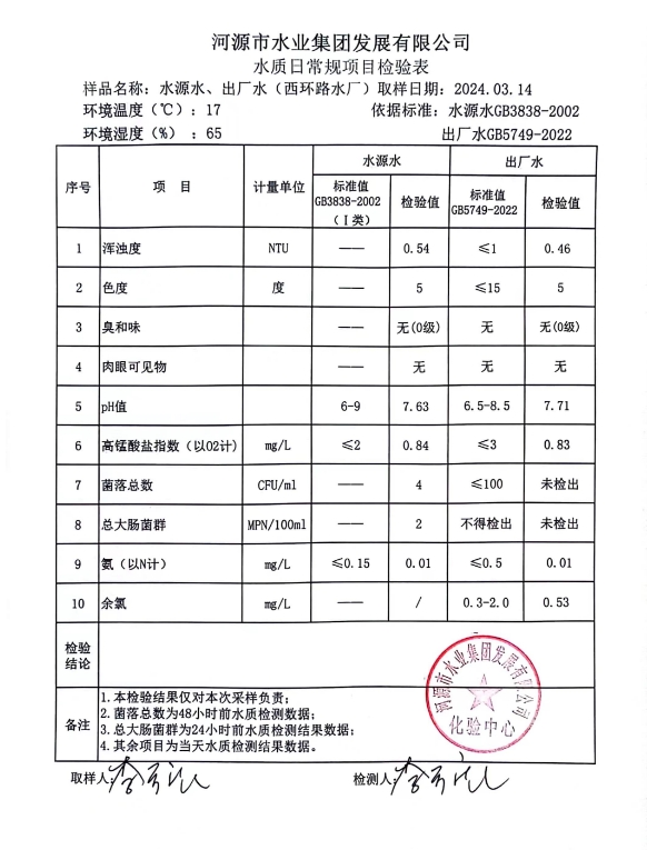 2024年3月14日水質(zhì)檢驗報告 ???