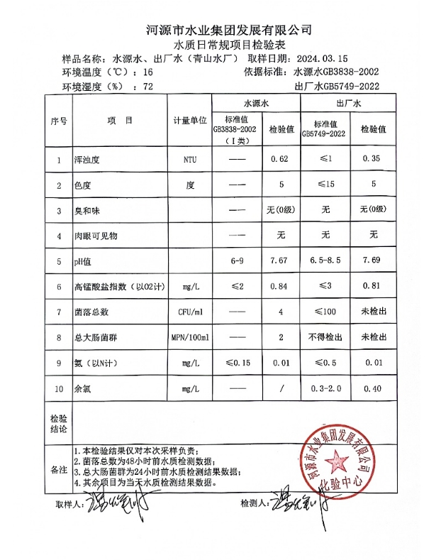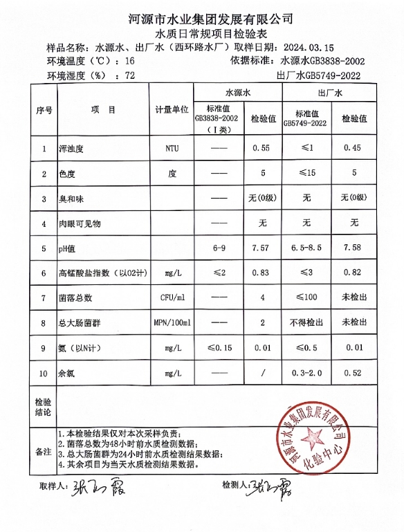 2024年3月15日水質(zhì)檢驗(yàn)報告 ???
