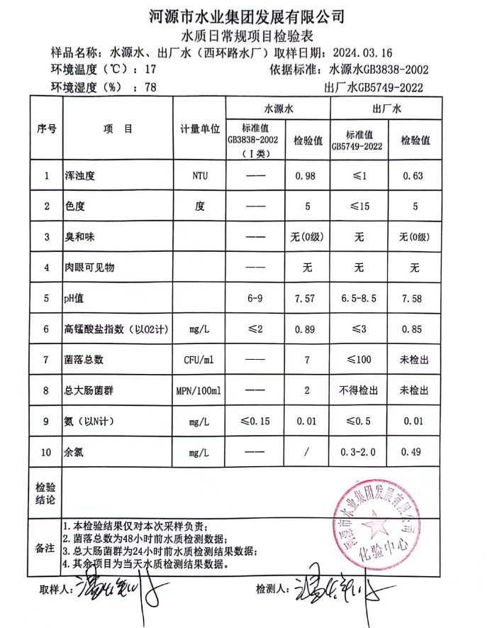 2024年3月16日水質(zhì)檢驗(yàn)報(bào)告