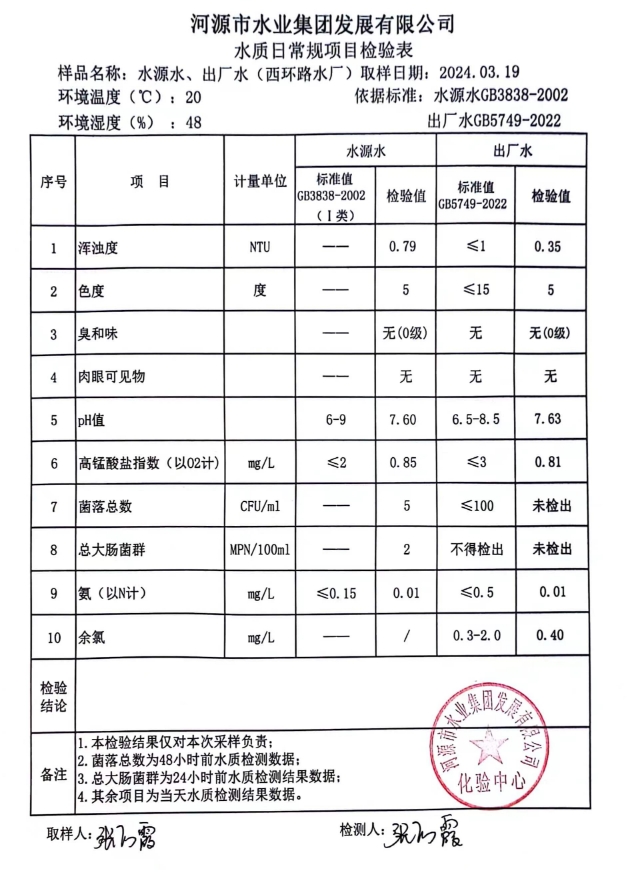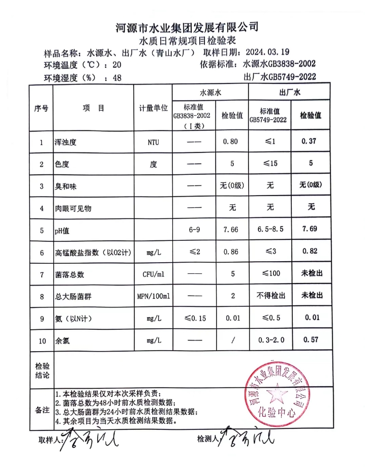 2024年3月19日水質(zhì)檢驗(yàn)報(bào)告