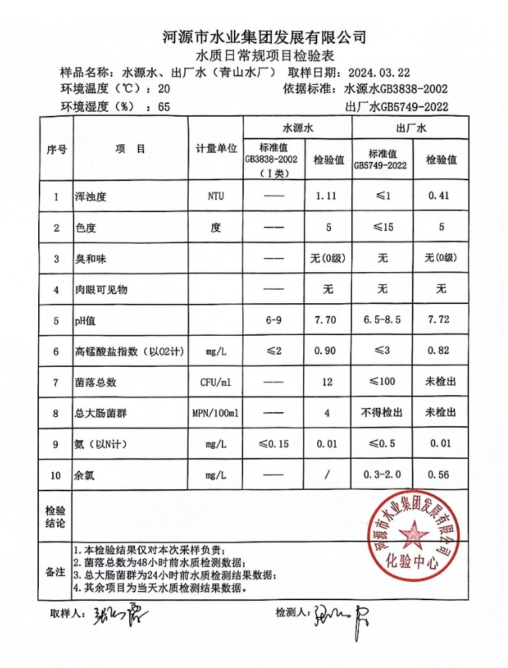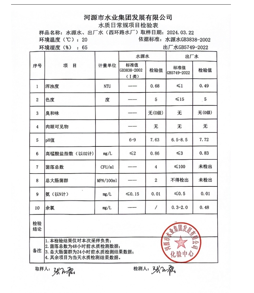 2024年3月22日水質(zhì)檢驗(yàn)報告