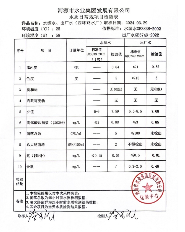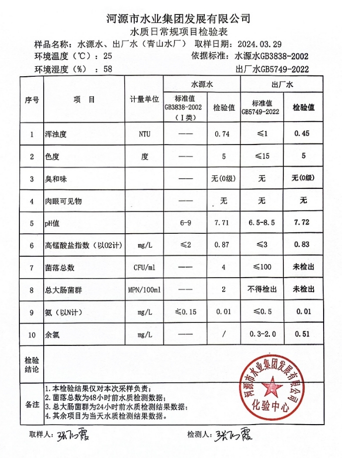 2024年3月29日水質(zhì)檢驗(yàn)報(bào)告