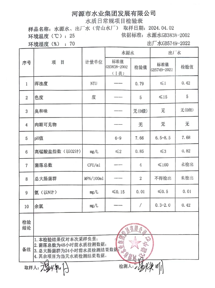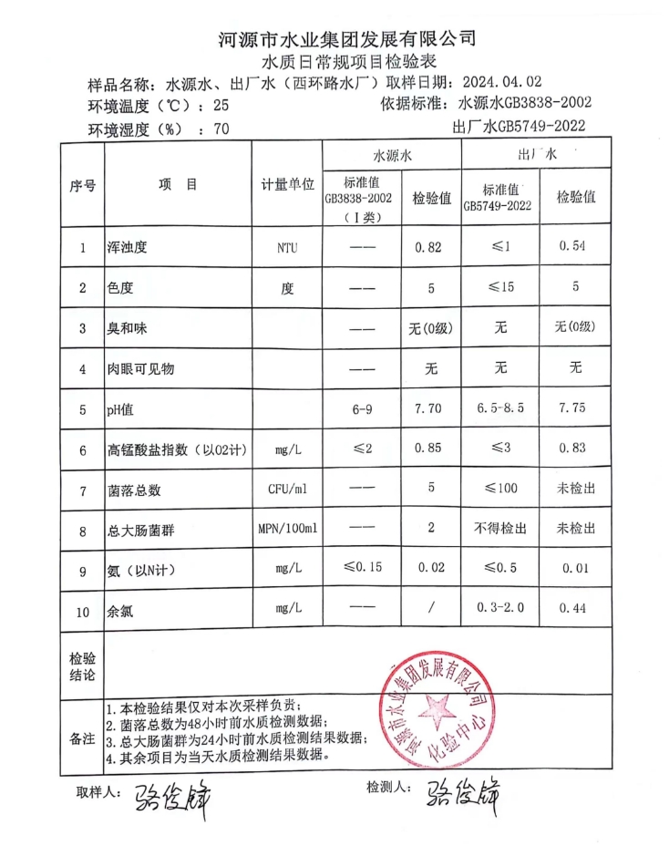 2024年4月2日水質(zhì)檢驗報告
