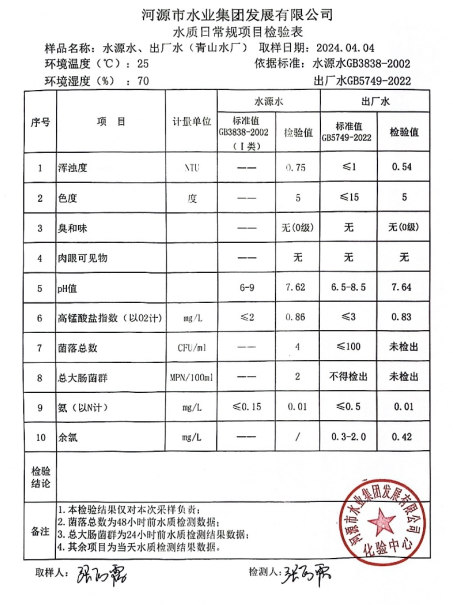 2024年4月4日水質(zhì)檢驗(yàn)報告