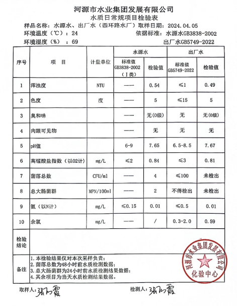 2024年4月5日水質(zhì)檢驗(yàn)報(bào)告