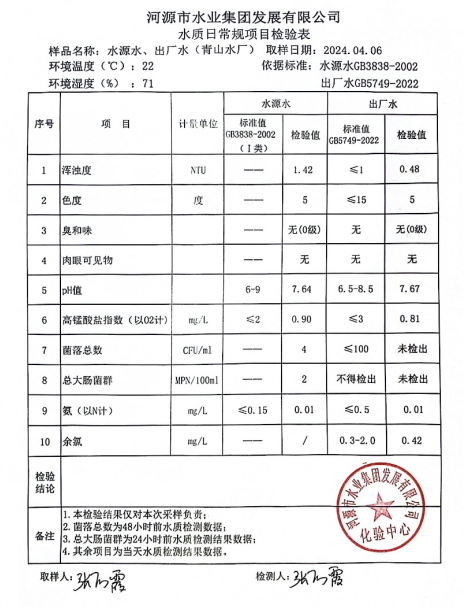 2024年4月6日水質(zhì)檢驗(yàn)報(bào)告