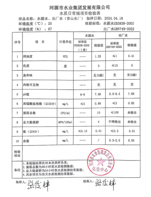 2024年4月18日水質(zhì)檢驗(yàn)報(bào)告