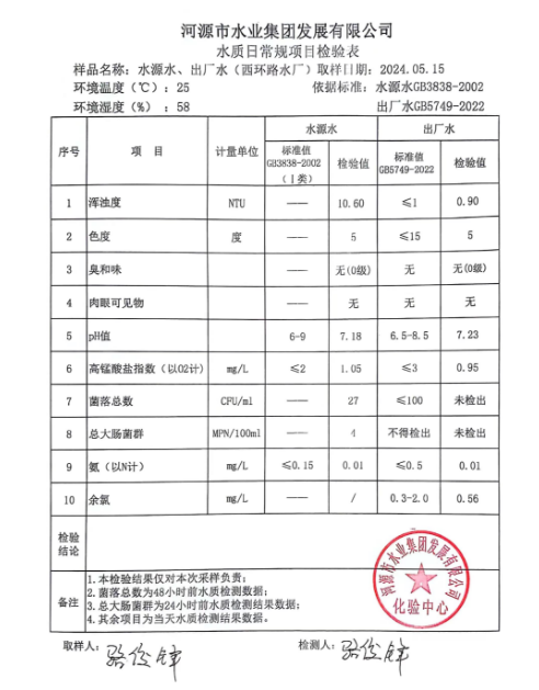 2024年5月15日水質(zhì)檢驗報告 ???