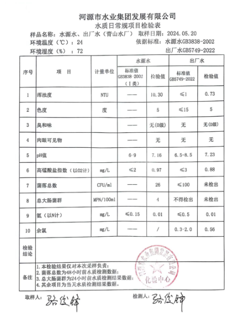 2024年5月20日水質(zhì)檢驗(yàn)報(bào)告 ???