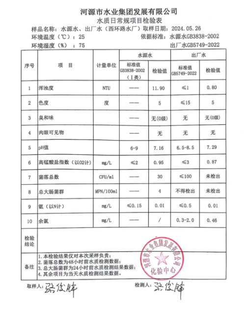 2024年5月26日水質(zhì)檢驗(yàn)報(bào)告 ???