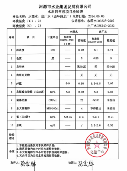 2024年6月6日水質(zhì)檢驗(yàn)報(bào)告 ???