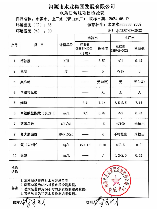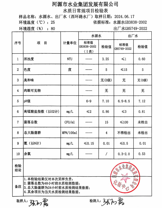 2024年6月17日水質(zhì)檢驗(yàn)報(bào)告