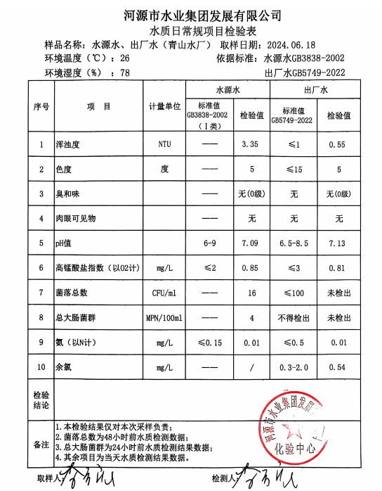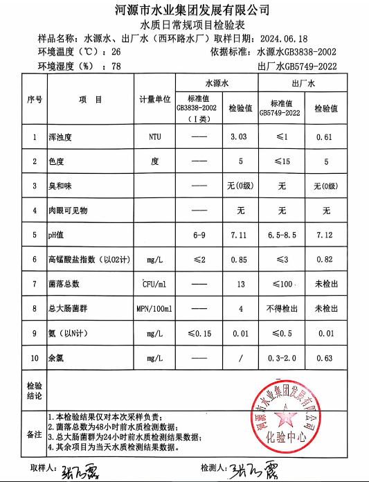 2024年6月18日水質(zhì)檢驗(yàn)報(bào)告