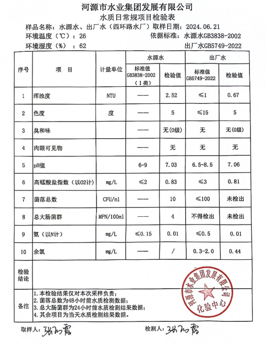 2024年6月21日水質(zhì)檢驗(yàn)報(bào)告