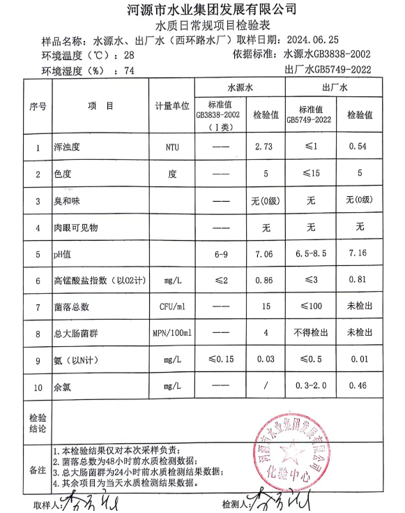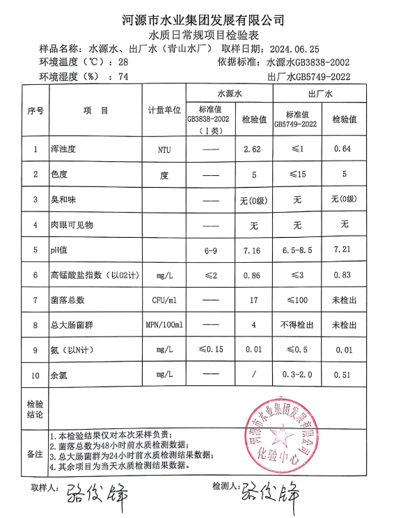 2024年6月25日水質(zhì)檢驗(yàn)報(bào)告