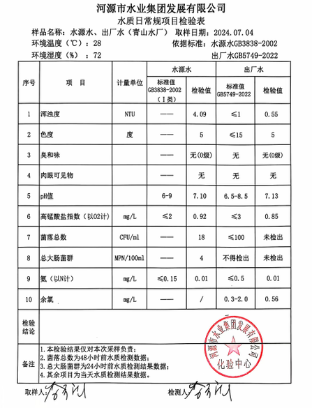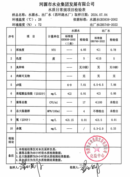 2024年7月4日水質(zhì)檢驗(yàn)報(bào)告