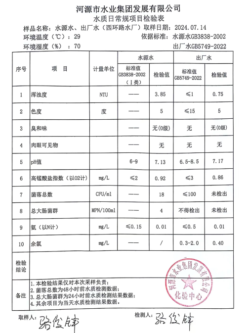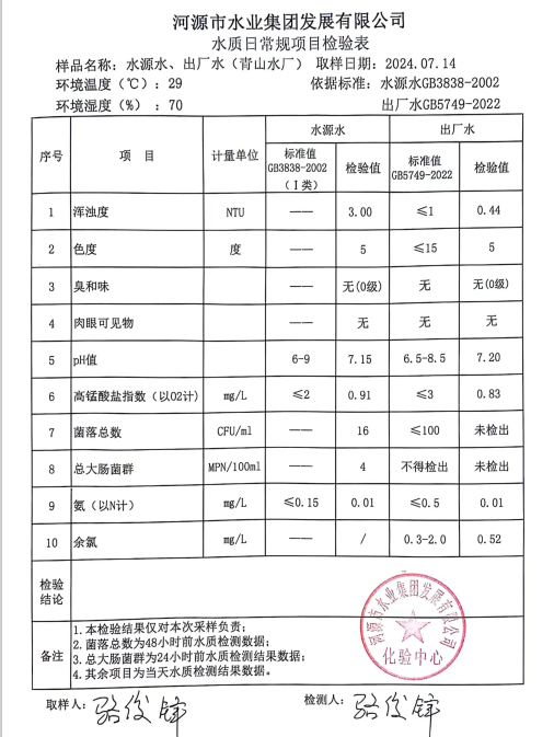 2024年7月14日水質檢驗報告