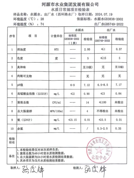 2024年7月19日水質(zhì)檢驗(yàn)報(bào)告
