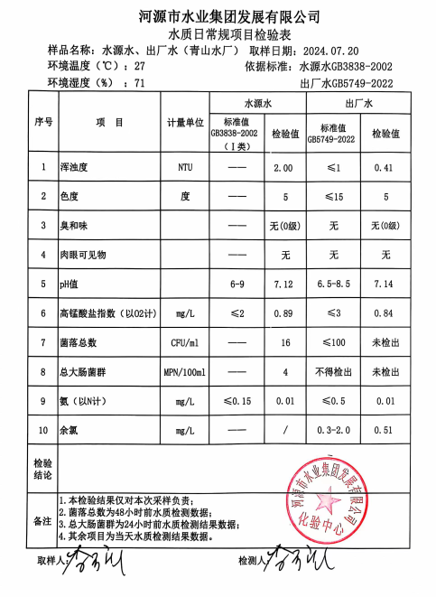2024年7月20日水質(zhì)檢驗報告