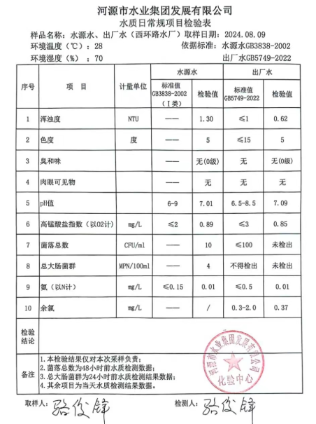 2024年8月9日水質(zhì)檢驗(yàn)報(bào)告