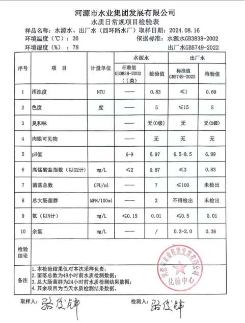 2024年8月16日水質(zhì)檢驗(yàn)報(bào)告