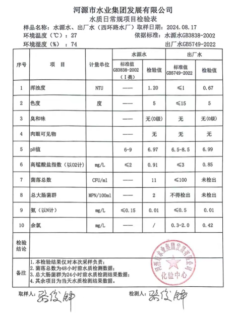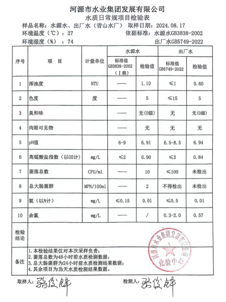 2024年8月17日水質(zhì)檢驗報告